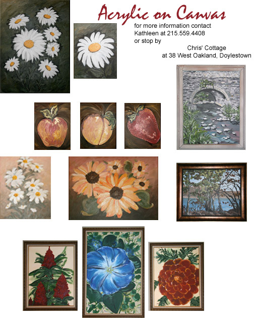 Custom Paintings and prints as well as the items seen below are available at Chris Cottage 215.345.1550.